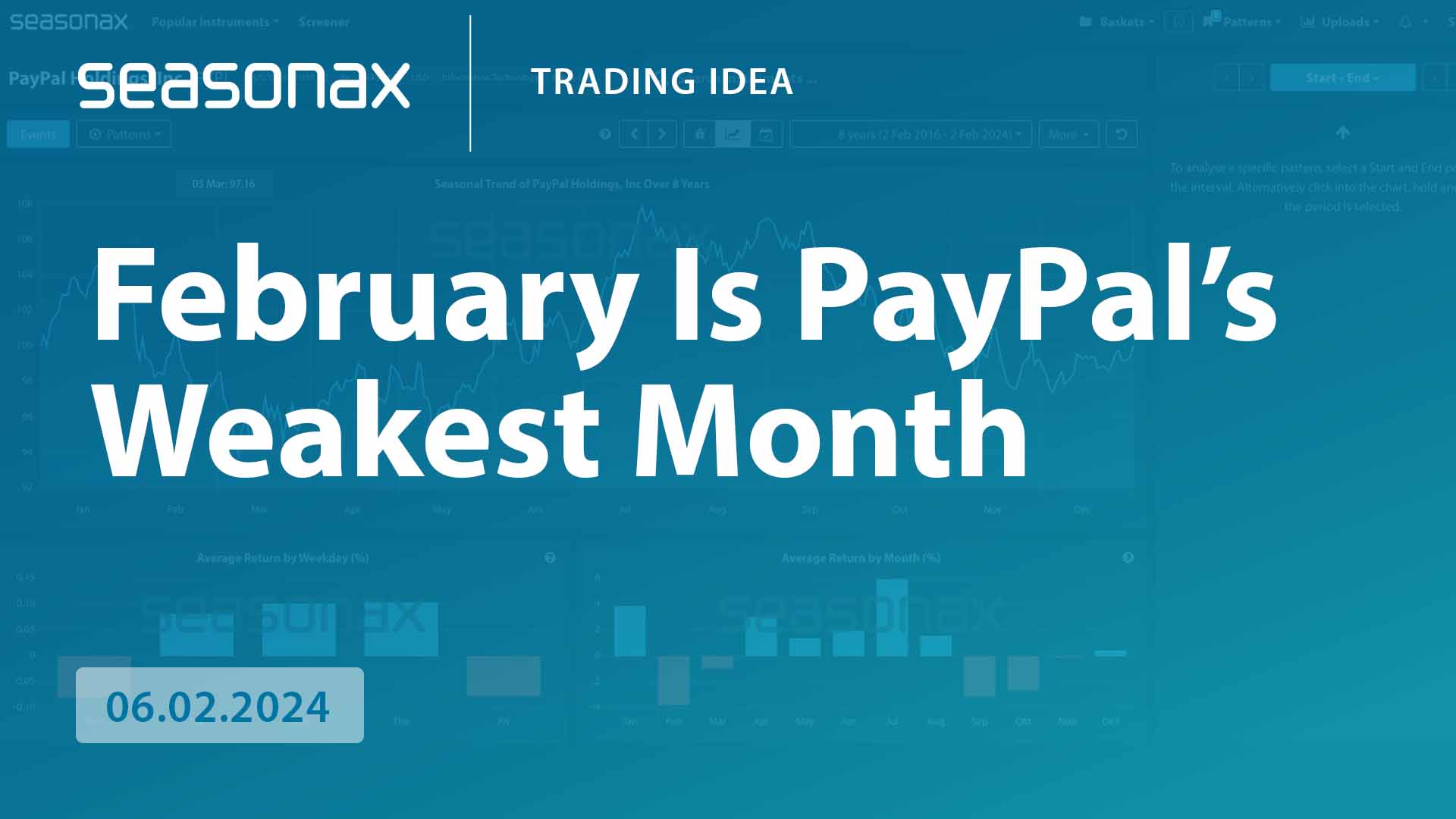 Over the last 8 years February has been the weakest month of the year for PayPal, closely followed by September. Furthermore, some of the falls have been double digit plunges in PayPal’s share price, so watch out for some significant volatility after the close with PayPal’s earnings due to be released.